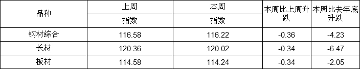 國(guó)內(nèi)市場(chǎng)鋼材綜合價(jià)格指數(shù)及長(zhǎng)材、板材價(jià)格指數(shù)(含稅)