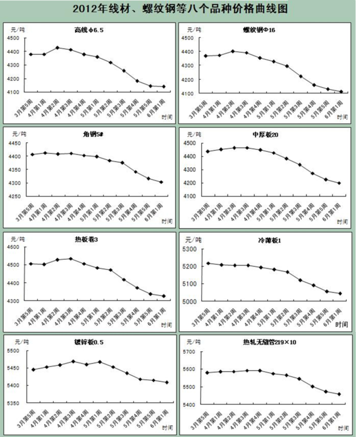 2012年6月4日-6月8日國(guó)內(nèi)市場(chǎng)八個(gè)品種價(jià)格及指數(shù)(含稅價(jià))