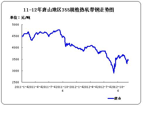 圖1 11-12年唐山地區(qū)355規(guī)格熱軋帶鋼走勢圖