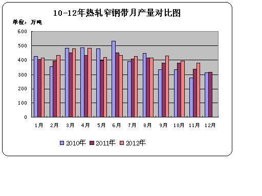 圖2 10-12年熱軋窄鋼帶產(chǎn)量對比圖