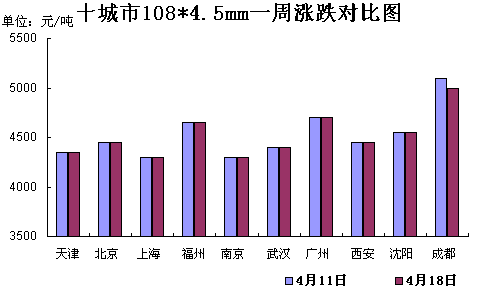 西北地區(qū)無縫管市場價(jià)格平穩(wěn)運(yùn)行,其中西安108*4.5市場價(jià)格4450元/噸。無縫管出廠價(jià)格以穩(wěn)為主,市場觀望情緒濃重,短期內(nèi)無縫管市場價(jià)格調(diào)整的可能性不大。