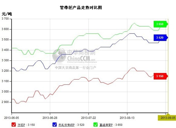 據(jù)中華商務(wù)網(wǎng)監(jiān)測數(shù)據(jù)顯示,截止9月5日,國內(nèi)十城市1.5寸國標(biāo)焊管均價3848元/噸,月度漲1元/噸;4寸國標(biāo)焊管均價3835元/噸,月度漲9元/噸;8寸國標(biāo)焊管均價3981元/噸,月度漲3元/噸。