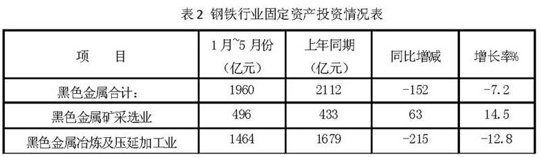 1月~5月份鋼鐵行業(yè)運(yùn)行情況