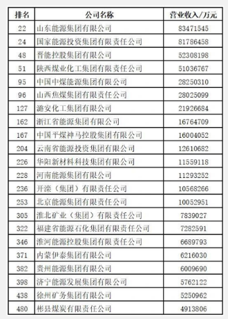 (關(guān)鍵字:煤炭企業(yè) 500強)