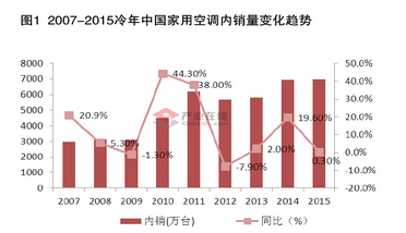 “以價(jià)換量”一直以來都被當(dāng)做企業(yè)銷售的利器,而自2014年10月開始的企業(yè)價(jià)格戰(zhàn),卻未達(dá)到預(yù)期效果。雖然在一定程度上刺激了內(nèi)銷整體出貨量,但去庫存力度微乎其微,也無法從根本上扭轉(zhuǎn)家用空調(diào)整體需求疲軟的局勢(shì)。相關(guān)監(jiān)測(cè)數(shù)據(jù)顯示,2015冷年,家用空調(diào)內(nèi)銷出貨量同比僅增長0.3%,較去年同期下滑19.30個(gè)百分點(diǎn)。2007-2015冷年家用空調(diào)內(nèi)銷出貨量變化趨勢(shì)如圖1所示