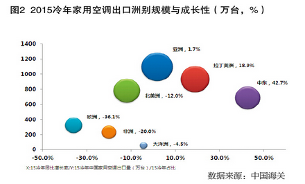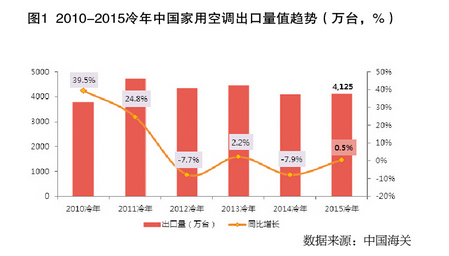 縱觀全球市場(chǎng),在經(jīng)歷了過去幾年的高增長后,有轉(zhuǎn)向溫和增長的跡象。2015年北半球的夏季到得很晚,許多地區(qū)直到6月中旬才高溫初現(xiàn)。涼爽的天氣、油價(jià)下跌、匯率波動(dòng)以及地緣政治緊張等種種利空因素影響下,全球空調(diào)市場(chǎng)在2015冷年表現(xiàn)黯淡,這也直接影響著中國家用空調(diào)的出口。