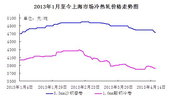 圖一、2013年1月至今上海市場冷熱軋價格走勢圖