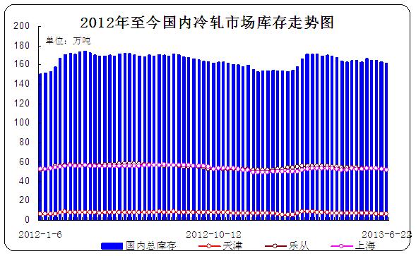 近幾周來國內(nèi)冷軋板卷市場的交投情況一直較為平穩(wěn),庫存方面也是四平八穩(wěn),并未出現(xiàn)過較大的起落。截止上周末,國內(nèi)冷軋板卷庫存合計161.83萬噸,微降1.17萬噸,其中西北地區(qū)冷軋庫存略增。6、7月份是家電、汽車等用鋼行業(yè)的市場淡季,行業(yè)景氣度不高,因此對于冷軋板卷的需求強度明顯減弱。面對終端淡季的逼近,商家措手不及,在部分市場資源難以消化的情況下,市場報價被迫向下傾斜。此外,5-6月份我國冷軋出口訂單表現(xiàn)較差,國內(nèi)外需求雙雙陷入低迷格局。不少商家認(rèn)為當(dāng)前冷軋市場漲價機制尚不成熟,在產(chǎn)量沒有明顯回落以及需求轉(zhuǎn)淡的背景下,短期內(nèi)冷軋板卷價格仍有進一步下探可能。