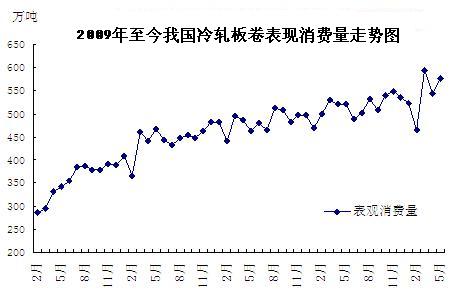 圖二:2009年至今我國冷軋薄板(卷)表觀消費量