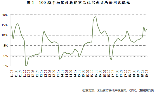 觀察歷史數(shù)據(jù),2018年下半年開始,全國100城年初累計房價同比漲幅持續(xù)擴大。今年2月份該漲幅略有收窄,這和春節(jié)假期效應(yīng)有關(guān)。到了3月份該漲幅繼續(xù)擴大。尤其是3月份房地產(chǎn)成交行情還不錯、市場預(yù)期有所調(diào)整,這也使得百城房價同比漲幅繼續(xù)擴大。