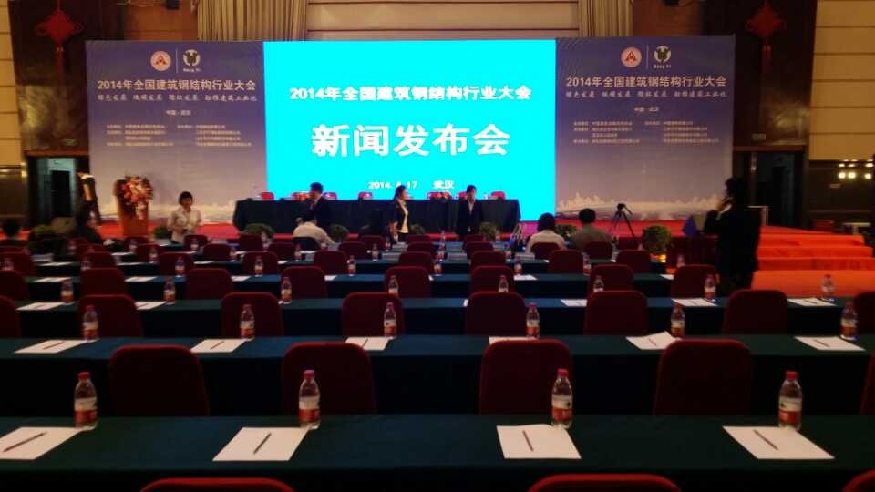 2014年全國建筑鋼結(jié)構(gòu)行業(yè)大會新聞發(fā)布會,于4月17日下午16時在武漢國際會展中心隆重召開。本次會議由中國建筑金屬結(jié)構(gòu)協(xié)會主辦,湖北弘毅鋼結(jié)構(gòu)工程有限公司承辦,中建鋼構(gòu)有限公司、江蘇滬寧鋼機(jī)股份有限公司、山東華興機(jī)械股份有限公司、河南亞鷹鋼結(jié)構(gòu)幕墻工程有限公司協(xié)辦。