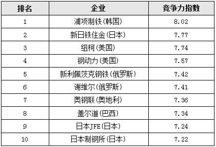 2016年競爭力排名前十的鋼鐵企業(yè)
