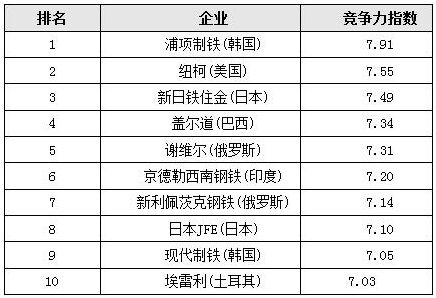 2015年競爭力排名前十的鋼鐵企業(yè)