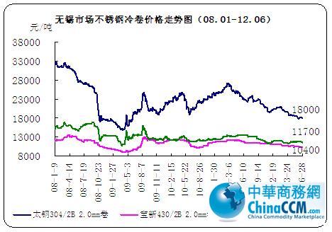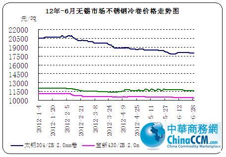 08年-12年6月無錫市場不銹鋼冷軋價格對比走勢圖