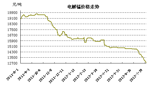 在不銹鋼原材料中一直處于較穩(wěn)定走勢的電解錳價格,在7月表現(xiàn)出急于走跌的趨勢。從而成為繼期鎳不振后,不銹鋼原材料的又一大弱勢產(chǎn)品。