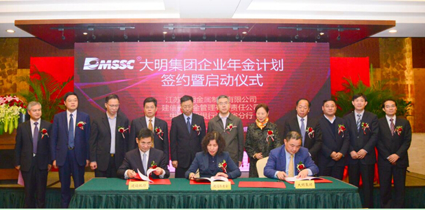 11月1日下午,建設(shè)銀行江蘇省分行、建信養(yǎng)老金管理有限公司、大明國際控股有限公司在無錫共同簽訂了大明集團(tuán)企業(yè)年金基金管理合同,同時(shí)進(jìn)行了“大明集團(tuán)企業(yè)年金計(jì)劃”啟動儀式;顒拥呐e行標(biāo)志著大明集團(tuán)企業(yè)年金計(jì)劃的正式落地,從參加人數(shù)和基金規(guī)模來看,該年金計(jì)劃是目前江蘇省內(nèi)乃至全國范圍內(nèi)最大的一單民營企業(yè)年金計(jì)劃,它覆蓋了大明集團(tuán)十多家分子公司的3600名員工。按照年金方案的職工參加條件,首批參加人數(shù)約1100人,首次繳費(fèi)規(guī)模約1700萬元,預(yù)計(jì)2017年參加人數(shù)可達(dá)2100人。
