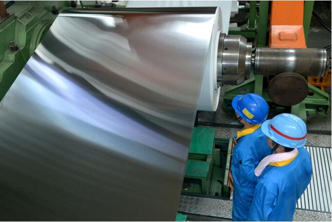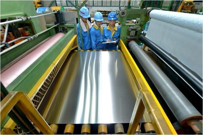 圖三、大明員工在檢查電梯用不銹鋼面板質(zhì)量。楊木軍攝