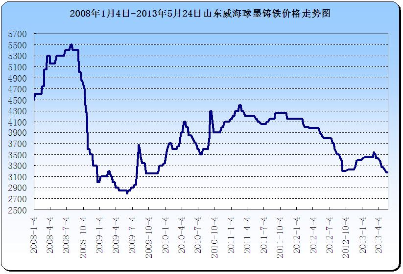 • 2008年1月4日-2013年5月24日山東威海球墨鑄鐵價格走勢圖