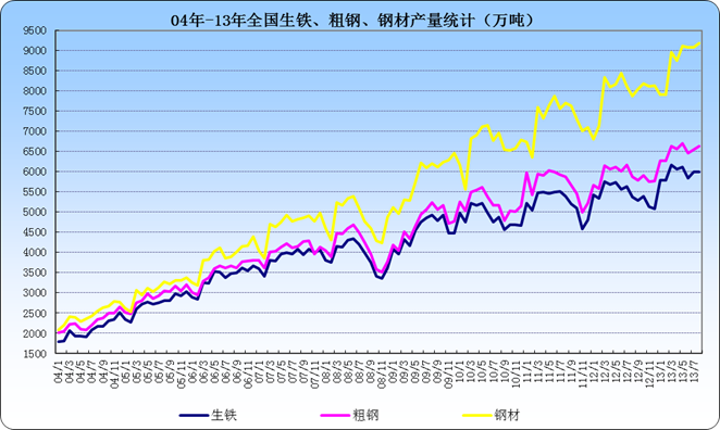 7、8月市場的淡季不淡,需求增加,價格出現(xiàn)快速上漲,鋼鐵企業(yè)開工率明顯增加,產(chǎn)量隨之上漲。