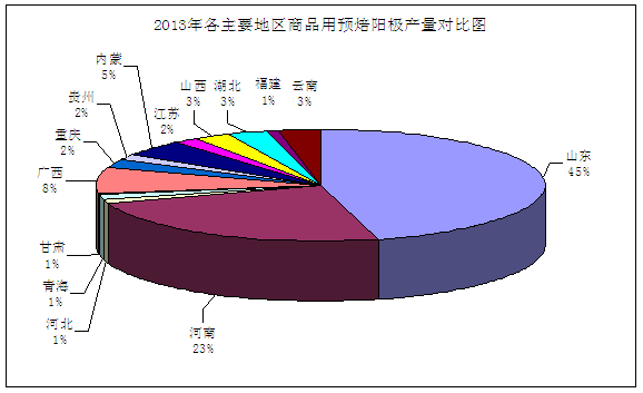 據(jù)中華商務(wù)網(wǎng)不完全統(tǒng)計(jì),2013年國內(nèi)商品用預(yù)焙陽極產(chǎn)量近700萬噸,主要集中在山東365萬噸、河南191萬噸、廣西60萬噸、湖北23萬噸。