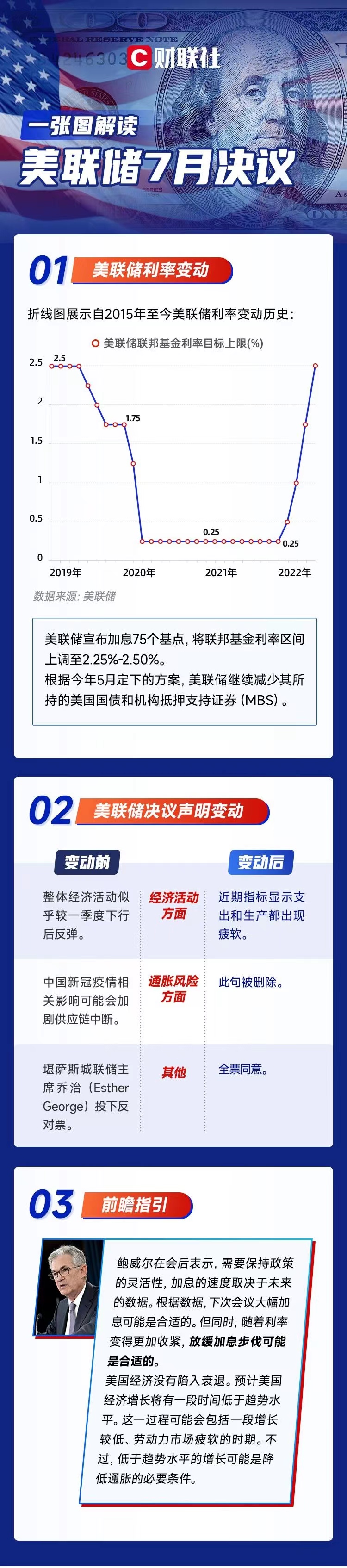 一圖解讀美聯(lián)儲7月決議:如期加息75基點,鮑威爾意外放“鴿”。