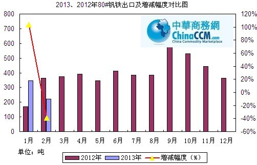 最新海關(guān)數(shù)據(jù)顯示:2013年2月國(guó)內(nèi)五氧化二釩出口376噸,環(huán)比1月815.408噸減少53.9%;高釩鐵(FeV80)出口222噸,環(huán)比1月346.325噸小幅減少35.9%;中釩鐵(FeV80)出口0.2噸,1月為零;釩氮合金出口5.871噸,1月為30噸。進(jìn)口方面,2月五氧化二釩無進(jìn)口,而釩鐵2月和1月一樣并未進(jìn)口;釩氮合金進(jìn)口114.002噸,1月為114.015噸。