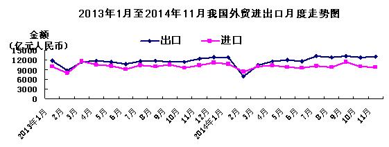 11月份,我國(guó)進(jìn)出口總值3688.5億美元,下降0.5%。其中,出口2116.6億美元,增長(zhǎng)4.7%;進(jìn)口1571.9億美元,下降6.7%;貿(mào)易順差544.7億美元,擴(kuò)大61.4%。