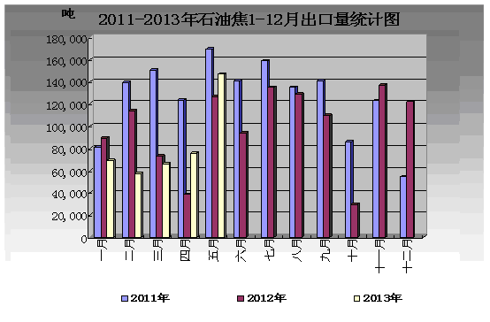 以下是2011-2013年石油焦1-5月出口量對比圖:
