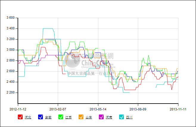 此次漲價(jià)涉及地區(qū)較廣,由上圖可見,河北、安徽、江蘇及山東等主產(chǎn)區(qū)均出現(xiàn)大幅反彈。