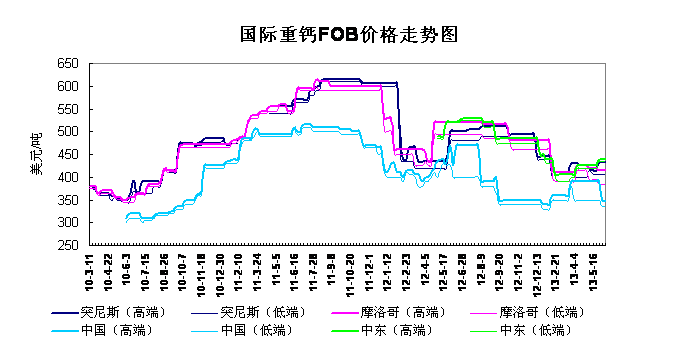 (關(guān)鍵字:重鈣 國際重鈣FOB價格走勢)