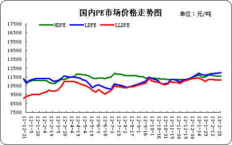 本周國內(nèi)PE市場報價窄幅整理,下游需求跟進疲弱,市場主流關注石化3月價格政策的出臺,實盤成交有待改善。
