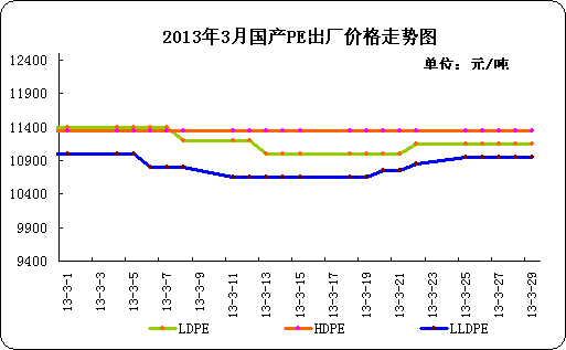 本周國內PE市場窄幅整理,石化出庫價堅挺支撐市場,商家多隨行就市出貨,但下游剛性需求一般,實盤成交放量不大。周初開盤,國際原油期貨價格上漲,受供應偏緊支撐亞洲乙烯單體價格走高,兩大石化上調部分出廠價,各地PE市場報盤多平穩(wěn)向上,部分市場前期高位庫存逐漸釋放,但因線性期貨收盤走跌,打壓市場心態(tài),午后部分市場局部報價小幅回落。周初整體PE市場慣性觀望情緒濃郁,場內買賣雙方實盤操作謹慎。周二,因塞浦路斯與國際金融機構達成救助協(xié)議,歐美原油期貨繼續(xù)上漲,國內石化出廠價整體持穩(wěn),局部小幅調漲,對市場具有一定的支撐,但國內線性期貨大幅下滑打壓市場交投信心,各地市場報盤出現(xiàn)松動,場內交投表現(xiàn)疲弱,實盤成交繼續(xù)承壓。隨后,國際原油期貨價格繼續(xù)高走,亞洲乙烯單體收盤平穩(wěn),國內石化出廠價格以平穩(wěn)為主,各地PE市場報盤小幅整理,商家心態(tài)謹慎,部分市場漲跌表現(xiàn)不一,下游剛性需求改善不大,多按需采購,實際成交放量不盡人意。臨近周末,原油/乙烯單體接連走高,但國內線性期貨持續(xù)下行,各地PE市場穩(wěn)中走跌,商家多關注石化四月新價格,部分庫存壓力較大,小幅讓利出貨,不過受成本支撐,讓利空間不大,下游仍按需采購,市場實際成交一單一談。