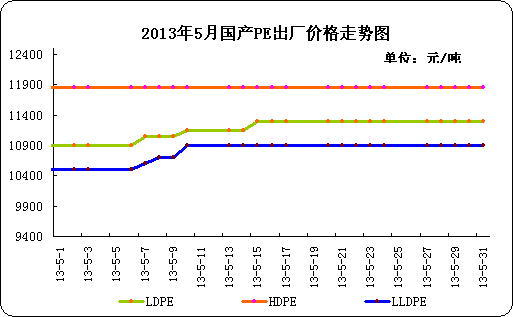 1.2 2013年5月國內(nèi)PE出廠價(jià)格走勢(shì)圖