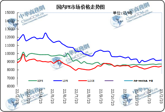 后市預(yù)預(yù)測:本周從成本方面看,國際原油期貨價格重心下移,對市場支撐力度減弱。供應(yīng)方面,部分檢修裝置重啟,且 本月份仍有新裝置計劃投產(chǎn),供應(yīng)端壓力仍然較大。需求端,傳統(tǒng)地膜生產(chǎn)和需求旺季,開工較理想,但棚膜裝置開工稀少,其他行業(yè)也于年后陸續(xù)復(fù)產(chǎn),基本恢復(fù)至正常生產(chǎn)水平,需求增加對供應(yīng)壓力有一定的緩解。綜合來看,隨著下游企業(yè)陸續(xù)復(fù)工,市場交投氣氛將逐漸回升,然成本端和供應(yīng)端無明顯支撐,市場上漲動力仍不足,預(yù)計下周國內(nèi)市場價格震蕩上行。