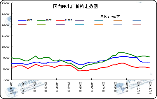 1.2 2023年11月國內(nèi)PE出廠價(jià)格走勢(shì)圖
