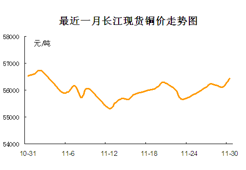 附最近長(zhǎng)江現(xiàn)貨銅價(jià)走勢(shì)圖: