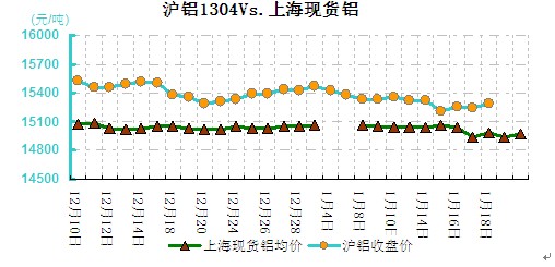 圖二 滬鋁1304VS現(xiàn)貨鋁價(jià)對(duì)比走勢(shì)圖