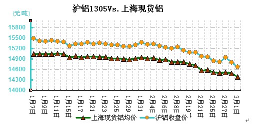 圖二 滬鋁1305VS現(xiàn)貨鋁價(jià)對(duì)比走勢(shì)圖