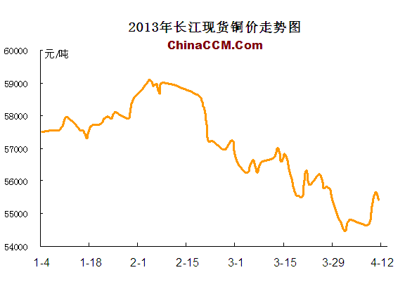 2013年以來長(zhǎng)江現(xiàn)貨銅價(jià)走勢(shì)圖: