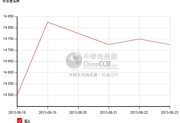 本周鉛錠價(jià)格以回落盤整為主,市場價(jià)格變化不大,只是下游采購方面不樂觀,現(xiàn)貨庫存依然在逐步減少,倫敦8月20日消息,國際鉛鋅研究小組(ILZSG)周二公布月報(bào)顯示,2013年1-6月全球鉛市供應(yīng)短缺4萬噸。來看下本周上,F(xiàn)貨鉛錠價(jià)格走勢: