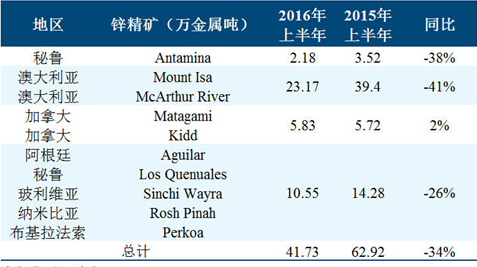 • 據(jù)嘉能可最新半年報(bào)顯示,2016年上半年自有資源鋅金屬產(chǎn)量50.65萬(wàn)噸,較去年同期減少22.38萬(wàn)噸,同比下滑31%。上半年鋅精礦產(chǎn)量41.73萬(wàn)噸 同比減少34%。