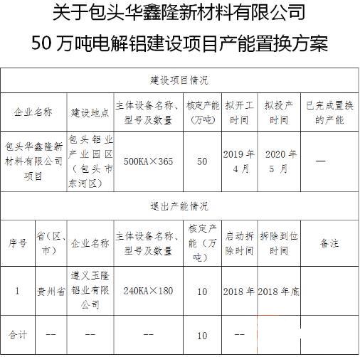 按照《國務院辦公廳關于營造良好市場環(huán)境促進有色金屬工業(yè)調(diào)結構促轉(zhuǎn)型增效益的指導意見》和《工業(yè)和信息化部關于電解鋁企業(yè)通過兼并重組等方式實施產(chǎn)能置換有關事項的通知》的相關要求,現(xiàn)對遵義玉隆鋁業(yè)有限公司產(chǎn)能轉(zhuǎn)移聲明書和遵義玉隆鋁業(yè)有限公司電解鋁產(chǎn)能置換方案予以公示,歡迎社會公眾進行監(jiān)督。公示期為自本公示發(fā)布之日起10個工作日。