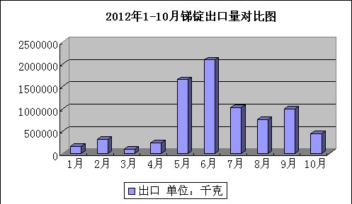 2012年1-10月銻錠出口量對(duì)比圖
