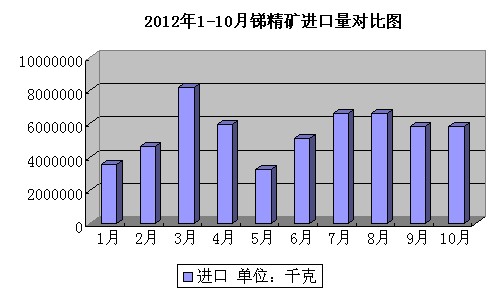 2012年1-10月銻精礦進口量對比圖