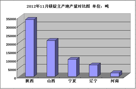 2012年11月鎂錠主產(chǎn)地產(chǎn)量對比圖