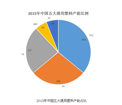 2015年中國五大通用塑料產(chǎn)能占比