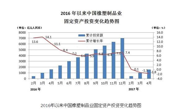 橡膠和塑料制品業(yè)固定資產(chǎn)投資額為1575億元,同比下降1.8%。