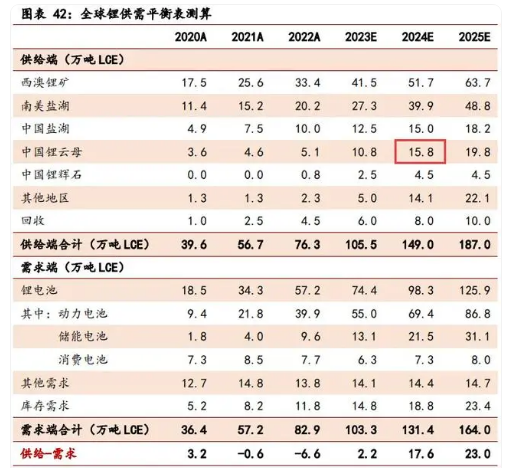 InfoLink預(yù)測(cè),2024年全球碳酸鋰總產(chǎn)出預(yù)計(jì)將達(dá)到132.3萬(wàn)噸,2024年總需求達(dá)118.9萬(wàn)噸,將有超過(guò)10%的剩余,碳酸鋰價(jià)格將持續(xù)承壓。