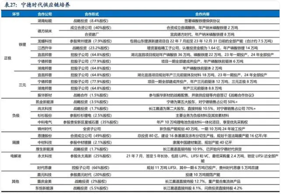 寧德主動(dòng)通過(guò)參股、合資等方式培養(yǎng)上游供應(yīng)商,掌控材料核心技術(shù),推動(dòng)天賜材料、璞泰來(lái)、湖南裕能、容百科技等成長(zhǎng)為全球龍頭,且陸續(xù)扶持起震裕科技、富臨精工、長(zhǎng)遠(yuǎn)鋰科、凱金新能源等二三供應(yīng)商,確保自身的絕對(duì)話語(yǔ)權(quán)。