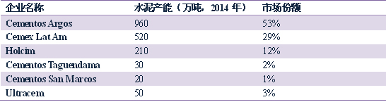 表1:哥倫比亞水泥企業(yè)產(chǎn)能及市場份額